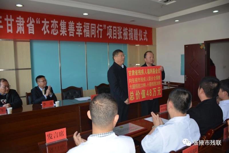 为改善贫困肢体残疾人身体状况,提高他们的生活质量,甘肃省残疾人福利基金会开展2019年“衣恋集善幸福同行”项目,并于11月20日在张掖市残联举行项目捐赠仪式。