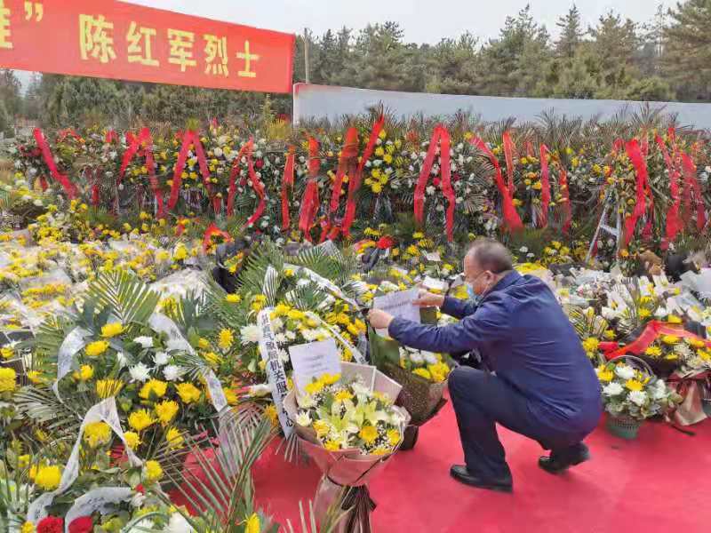 随后,为保卫祖国而牺牲的陇南籍陈红军烈士敬献了花篮;陈红军烈士在33岁风华正茂时,在我国边防部队与外军发生冲突处置时,陈红军作为营长身先士卒,为了祖国疆土的完整,献出了年轻而又宝贵的生命。多年来他在风雪边防线上战严寒斗酷暑,任劳任怨,至死无悔,最后为祖国的安宁和人民的安全献出了自己的生命,为全省、全国人民树立了学习的榜样。陈红军烈士英勇戍边、精忠报国的壮举感染了全国人民,英雄的事迹广为传颂。